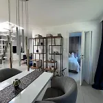 Le camere dispongono di una zona spogliatoio e una zona pranzo, nonché di servizi per la preparazione di tè/caffè per la tua comodità. Provvedono di una zona spogliatoio, servizi per la preparazione di tè/caffè e una TV a schermo piatto con canali satellitari e hanno anche un bollitore elettrico, un frigo e utensili da cucina.